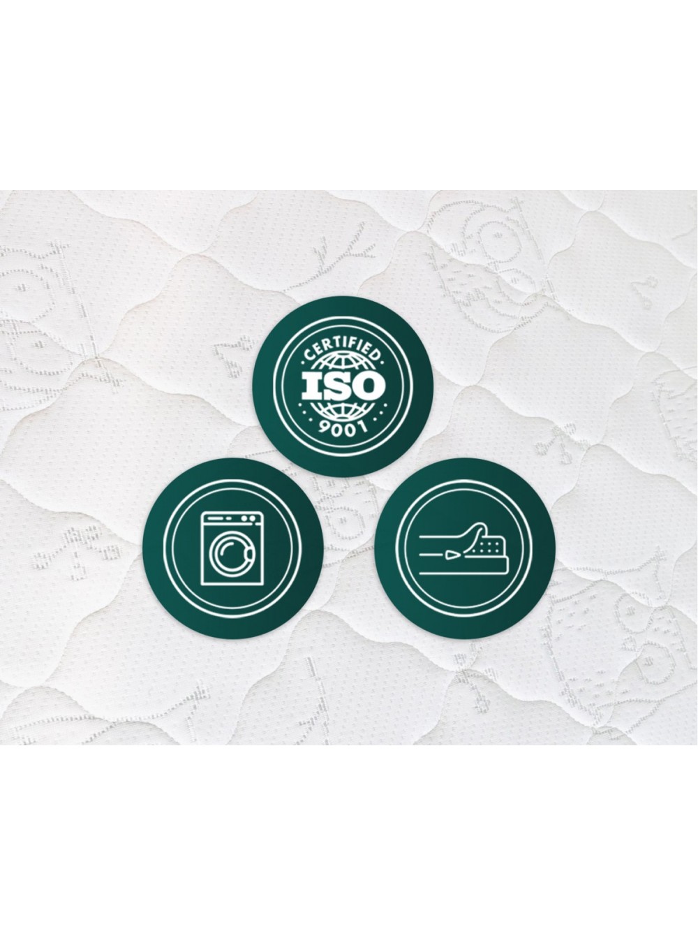 2. Съемный трикотажный чехол. Чехол выполнен из прочной трикотажной ткани в составе которой содержится хлопок. Ткань простегана по технологии глубокой стежки. Особая техника стёжки позволяет равномерно, без потери формы и объёма, зафиксировать все составляющие чехла. Хлопковые нити в составе ткани обеспечивают здоровый микроклимат во время сна. Чехол имеет молнию, что позволяет стирать его в домашних условиях.
